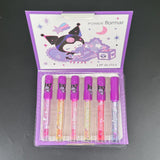 Add a touch of sparkle to your lips with the Power Flormar Kuromi Lip Gloss Set! Each of the six shimmering lip glosses in this adorable collection is infused with glitter to create a stunning finish. The packaging showcases the beloved Kuromi character in a dreamy, pastel-themed design, making it perfect for fans of cute and stylish cosmetics. The glosses have hydrating formulas and come in a variety of shades to keep your lips soft and glossy all day. Whether you're looking for a subtle shine or a bold shimmer, this set has the perfect gloss for any occasion! 🌙✨💜