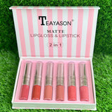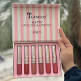 TEAYASON 6-Piece Matte 2-in-1 Lip Gloss & Lipstick Set (Nude) 💄🌟