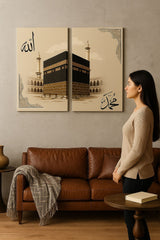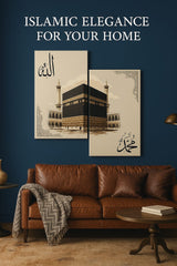 Bring the sacred beauty of Makkah into your home with this elegant canvas wall art set. Featuring the majestic Kaaba and Arabic calligraphy , this piece creates a spiritually uplifting atmosphere.
